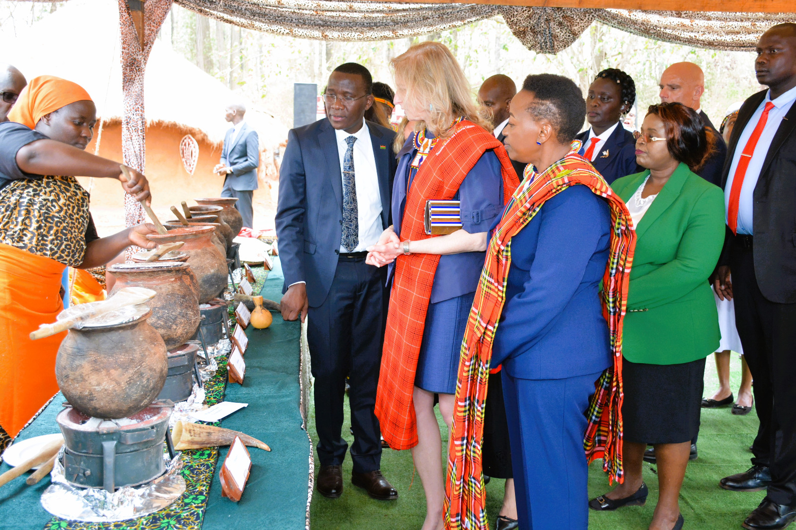The Cabinet Secretary, Hon. Peninah Malonza, has today joined the First Lady of Kenya, Mama Rachel Ruto, and the First Lady of the Republic of Italy, Laura Mattarella, for a visit at the Bomas of Kenya Limited, to experience the rich diversity of the Kenyan culture.