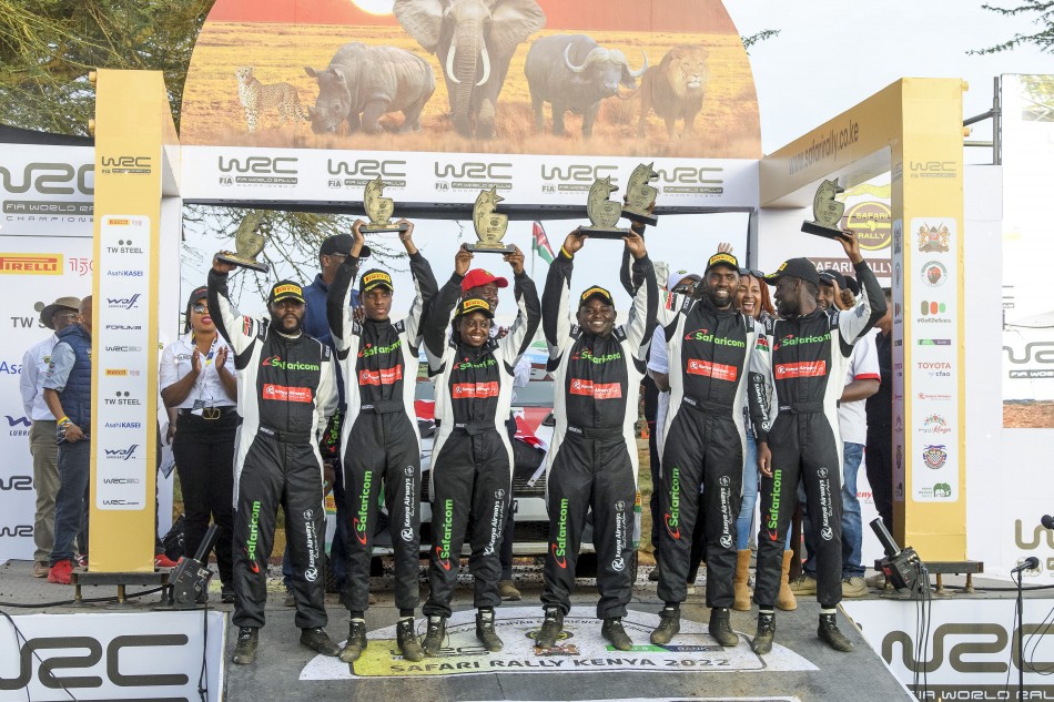 FIA Junior WRC regular Mcrae Kimathi rounded out the all-Kenyan podium over 10 minutes behind at the end of a brutal event which forced every driver into retirement at least once.